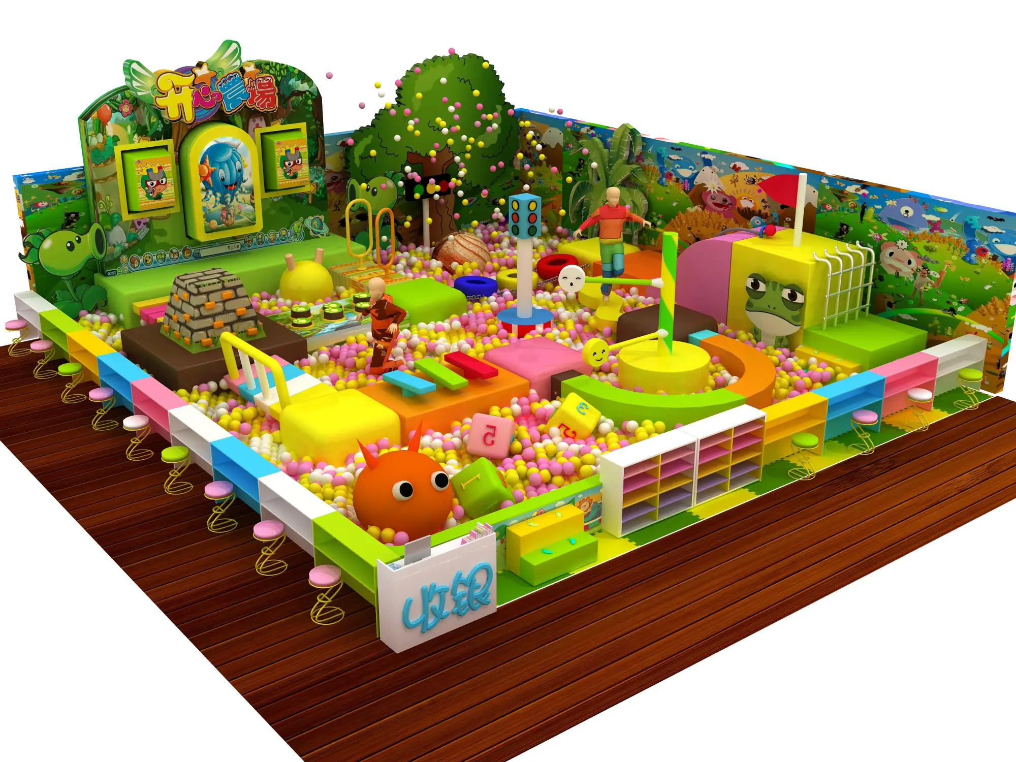 معدات ملاعب داخلية مع حوض سباحة بالكرة وألعاب تفاعلية للأطفال للعب في مركز التسوق